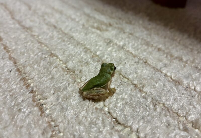 1ヵ月ほど前に不法侵入してきたカエルちゃん、最初はビックリしましたが今では帰ってから様子を見るのが毎日の楽しみであり癒しになっています。