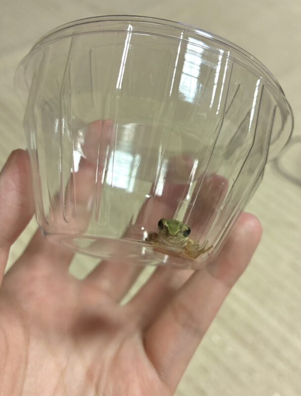 このまま家の中で迷子になって干からびるのは嫌だ!と空気穴を開けた蓋付きの容器で確保。